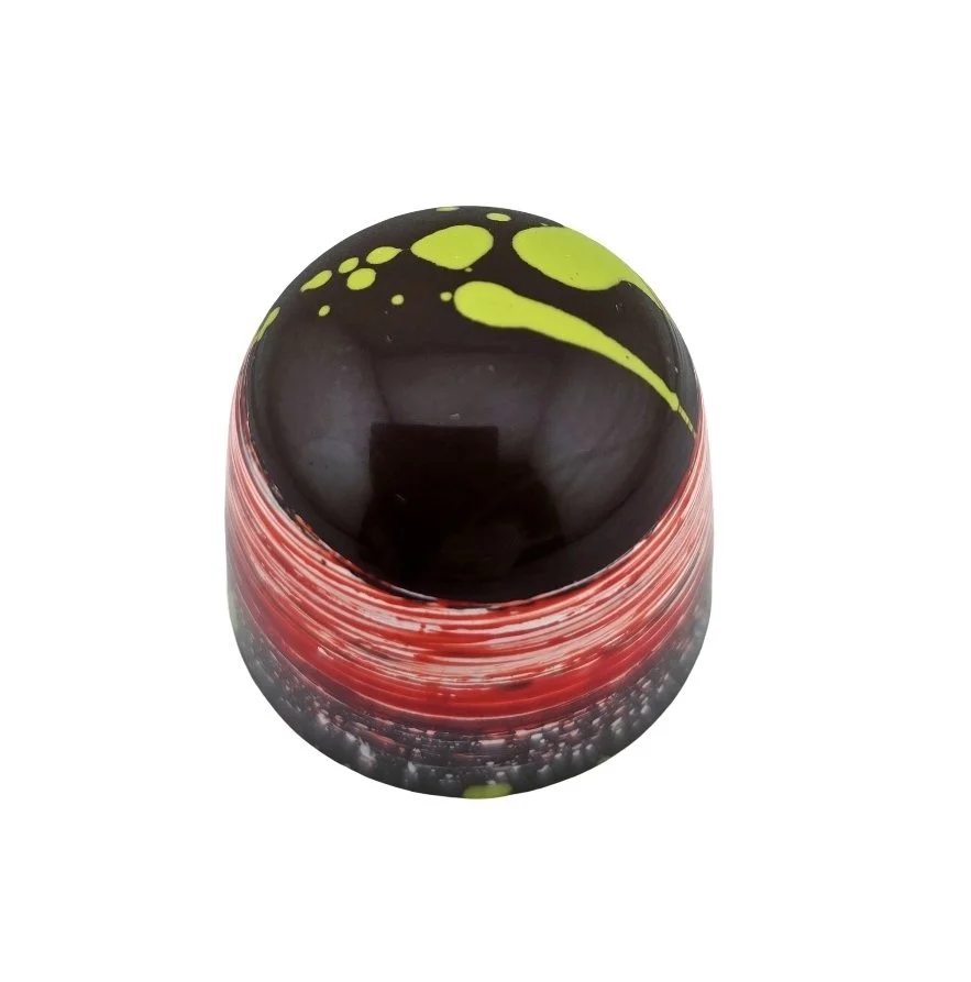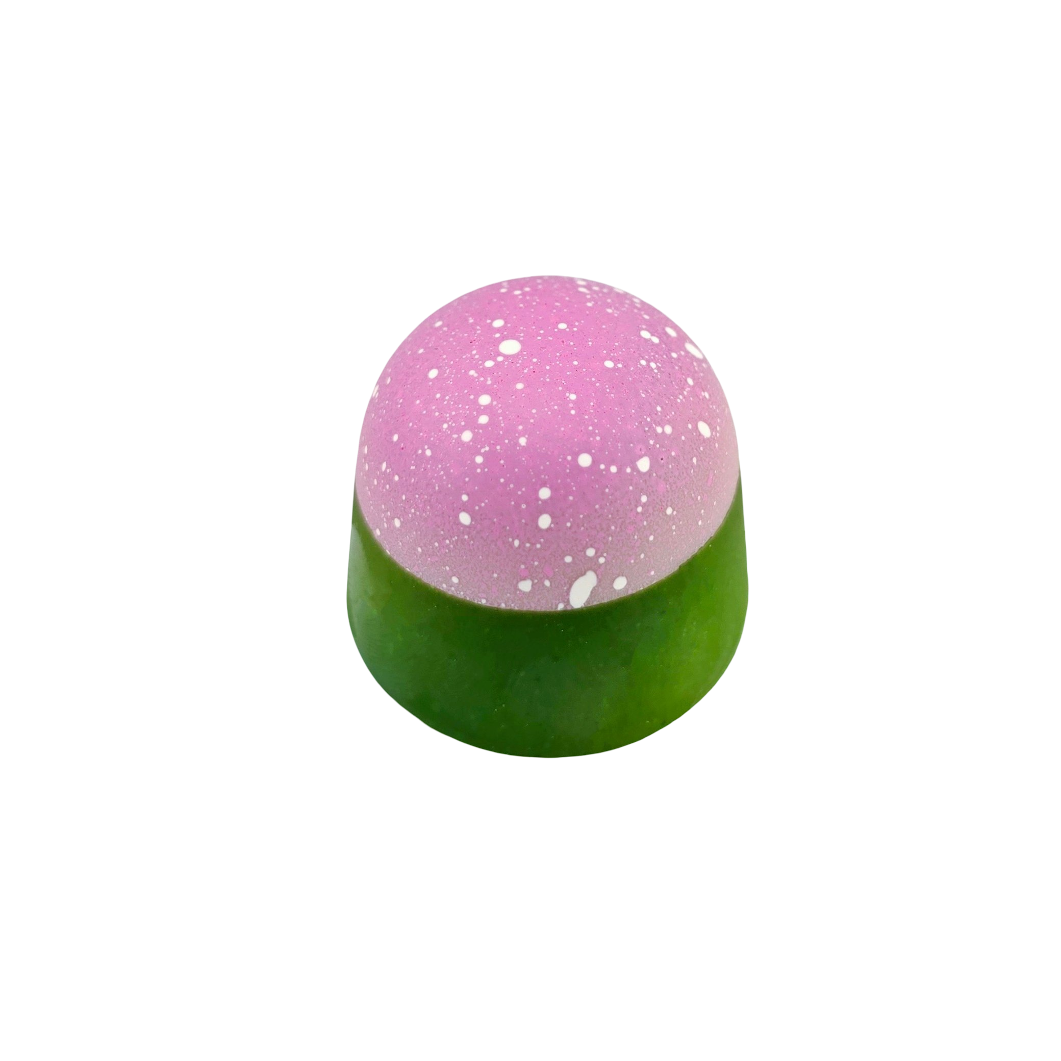 White Chocolate Shell, Berry Pate de Fruit, Lime Sorbet Ganache, Meringue Ruby Chocolate Base