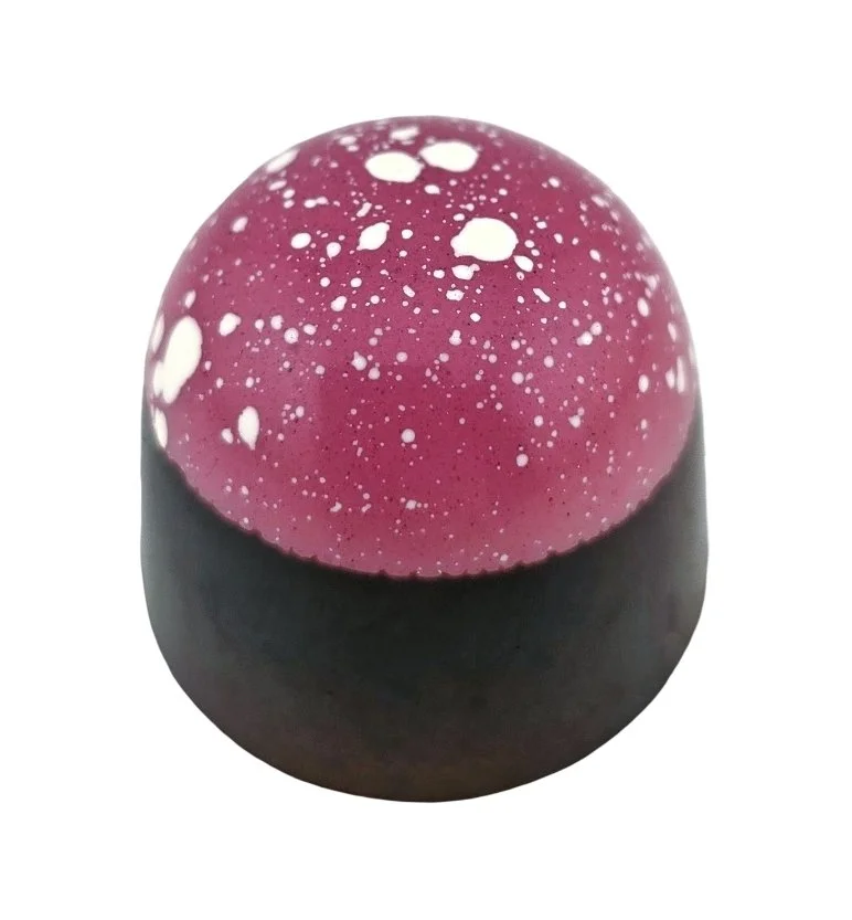 White Chocolate Shell, Black Cherry Pâte de Fruit, Dark Chocolate Cherry Ganache